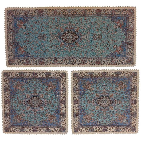 لبه های این ست زیبا و نفیس یراق دوزی شده است . آستر کشی عالی و تمیز , شستشو توسط دست با کف شامپو , مناسب جهت میز جلو مبل و میزهای عسلی , میز آرایش و میزهای پاتختی , استفاده هر کدام به تنهایی برای وسط میزهای مختلف , هدیه دادن هر کدام به تنهایی به دوستان و عزیزانتان , به دلیل نفیسی ترمه قاب هر تکه از این مجموعه زیبایی آن را دو چندان می کند .