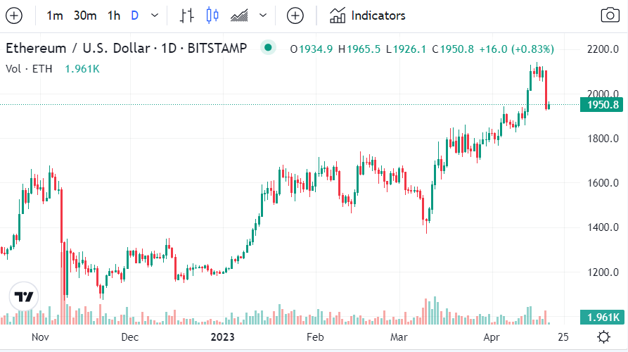 این حرکت در حالی انجام شد که اتریوم به پایینتر از کف قیمت اخیر خود در سطح ۲۰۳۰ دلار سقوط کرد و برخی چشم به کف پایینتری به ۱۸۳۰ دلار داشتند.