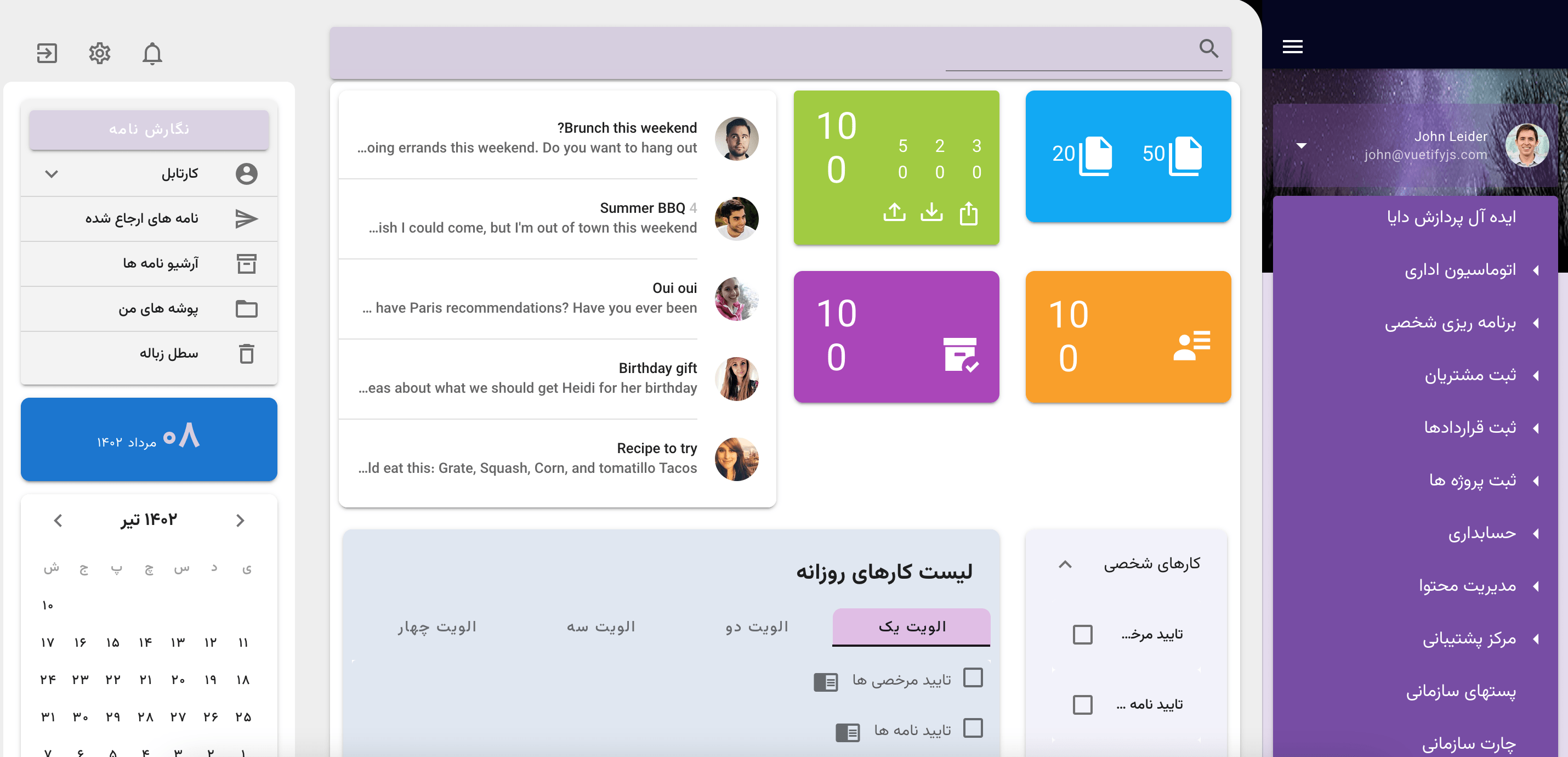 · دارای کارتابل اتوماسیون اداری است