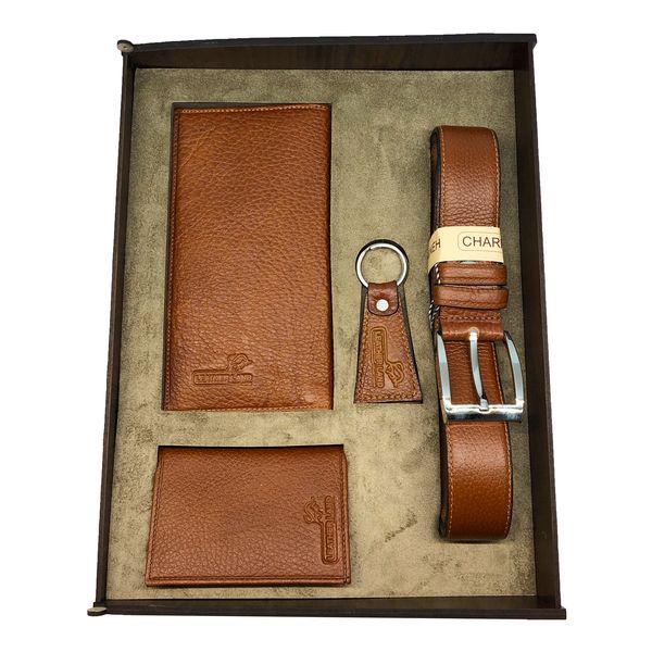 ست هدیه مردانه سرزمین چرم مدل 131058 رنگ عسلی