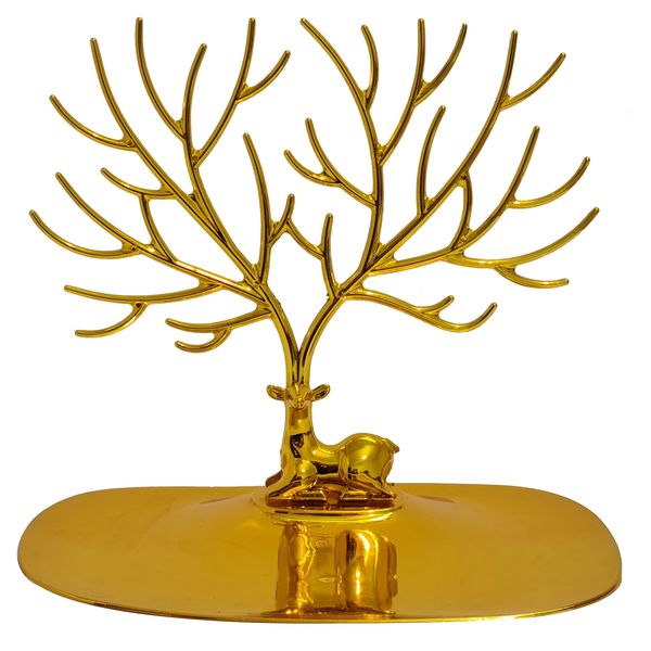 دستهبندی وسایل اتاق به شکل هوشمندانه و مفید بهطوری که لازم نباشد همه وسایل را داخل کشوها و کمدها بگذاریم؛ نیازمند وسایلی ابتکاری است که مخصوص این کار طراحی شده باشند. این محصول دارای ابعاد 25x15x25 سانتی متر بوده و علاوه بر شاخ های گوزن که به منظور آویزان کردن زیورآلات در نظر گرفته شده است، دارای یک سینی به منظورقرار دادن لوازم آرایشی، کیف پول، ساعت و… است. با استفاده از این آویز میتوانید به زیورآلات خود نظم داده و علاوه بر آن از گره خوردن احتمالی آنها به یکدیگر جلوگیری کنید. جنس پایه این استند از مواد پلاستیکی درجه یک ABS و روی کالا توسط روش وکیوم آبکاری براق شده است.