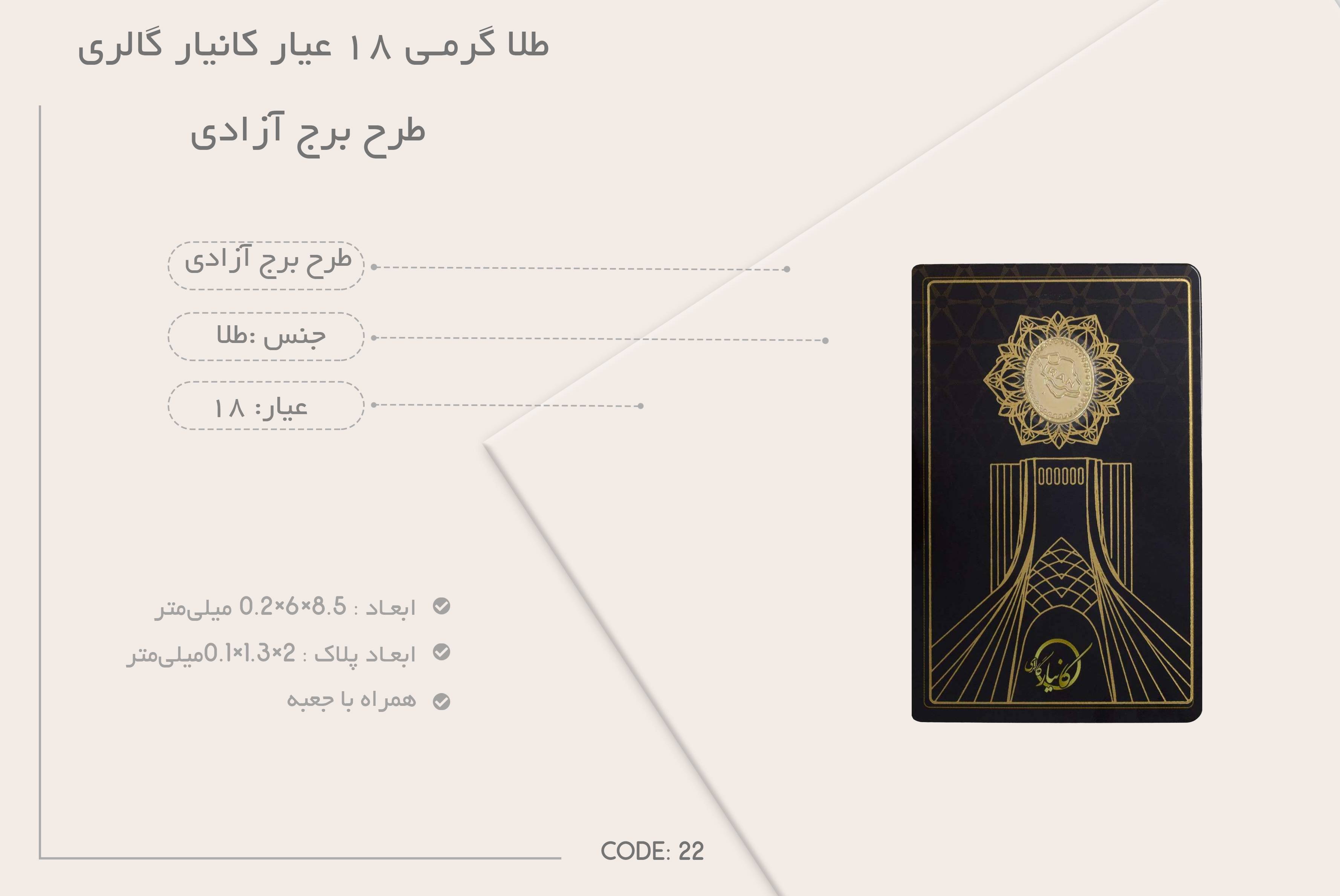 طلا گرمی 18 عیار کانیار گالری طرح برج آزادی کد 22