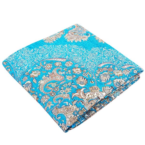 روفرشی مخمل ابریشم سوپر گلشن یزد کد ۰۷ زمینه فیروزه ای (طبق تصاویر) -