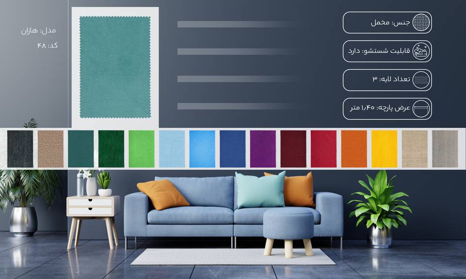 این روزها افراد به ترکیب رنگها علاقه زیادی پیدا کردند و به جای استفاده از مبل یک رنگ ترجیح میدهند با طیفی از رنگها دکور خود را بیارایند. برای این کار میتوان از ترکیب دو یا سه رنگ در مبل استفاده کرد. شما با سرچ مدل این پارچه مبلی در سایت دیجیکالا به راحتی رنگهای دیگر پارچه را مشاهده خواهید کرد.