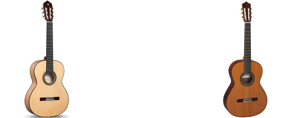 مهمترین قسمت بدنهی گیتار رویهی(Top) آن است، استفاده از چوبهای مرغوب در این منطقه بسیار متداول است. یکی از بیشترین چوبهایی که بهطور سنتی سالیان سال در ساخت گیتار مورداستفاده قرار میگیرد، سدر قرمز یکپارچه است. پشت و کنارها معمولاً بهطور سنتی از چوب روزوود ساخته میشوند; همچنین دسته از سدر یا ماهون و صفحه انگشت گذاری از آبنوس است. ترکیبی از این چوبها قرنهاست به ساخت باکیفیتترین و ارزندهترین گیتارها در طول تاریخ انجامیده است. استفاده از چوبهای ذکرشده برای ساخت یک گیتار کلاسیک مناسب است، برای ساخت یک گیتار فلامنکو به ترکیبات دیگری از چوب نیاز داریم که بتواند صدا، احساس و تاچ یک موسیقی فلامنکو را تداعی کند. تمایز دو گیتار کلاسیک و فلامنکو ، در خصوصیات طنین و رنگ صدا است. گیتار فلامنکو دارای ضربهای قوی، خشن، و صدایی زبر است. از طرف دیگر گیتار کلاسیک دارای صدای نرم ، لطیف ، دلپذیر و نسبتاً بم است. چوبهای استفادهشده در یک گیتار فلامنکو بسیار روشنتر از یک گیتار کلاسیک است. در ساخته بدنه گیتار فلامنکو معمولاً از چوب صنوبر آلمانی استفاده میکنند که معمولاً به رنگ زرد کمرنگ هستند. در پشت و کنار بدنه بهطور سنتی معمولاً از چوب سرو یکپارچه و دسته از ماهون و صفحه انگشت گذاری روزوود انتخاب میشود.