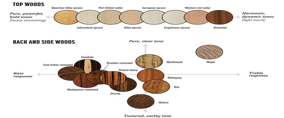 یکی از مهمترین عوامل تعیین کنندهی کیفیت و غنای صدای گیتار چوب به کار رفته در ساخت ساز است. سازندگان حرفهای گیتار میدانند که چه نوع چوبی را برای چه سبکی از نوازندگی گیتار باید استفاده کنند. در ساخت گیتار ازانواع چوبها استفادهشده است، ولی امروزه سازندگان حرفهای بر سرچند مدل چوب برای ساخت گیتار کلاسیک اتفاقنظر دارند. شما در هنگام خرید گیتار باید بدانید که از چه نوع چوبی در ساخت گیتار استفاده شده و هرکدام چگونه صدا میدهند و مناسب برای چه سبکی هستند.