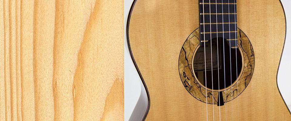 صنوبر پرکاربردترین چوب استفادهشده در ساخت گیتار لقب گرفته است. مناسب برای هر سبک و سلیقهای در نوازندگی است. گونههای مختلفی از درخت صنوبر در طبیعت یافت میشود که رایجترین آن استفاده از صنوبر سیتکا و آدیرنوداک است. تمام چوبهای صنوبر طیف صدایی پویا، گسترده و درعینحال و واضح تولید میکنند. انعطافپذیری، عمق صدایی و تولید هارمونیکهای زوج و صحیح، این چوب را سرآمد تمام چوبهای ساخت گیتار کرده است.
