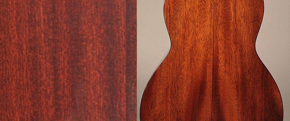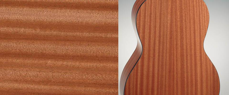 چوب ماهون بسیار غنی و از نظر ظاهری بسیار زیبا و جذاب است. تراکم بالای این چوب لحن و گرمی منحصربهفردی به آن بخشیده است. این چوب کاربرد فراوانی در موسیقی بلوز و همچنین فلامنکو دارد. ترکیب چوب ماهون و صنوبر در ساخت بدنه گیتار بسیار شایع است. این چوب ازنظر کیفیت، گرما و همچنین نمایش هارمونیکهای صحیح رتبهای پایینتر از چوب روزوود دارد.