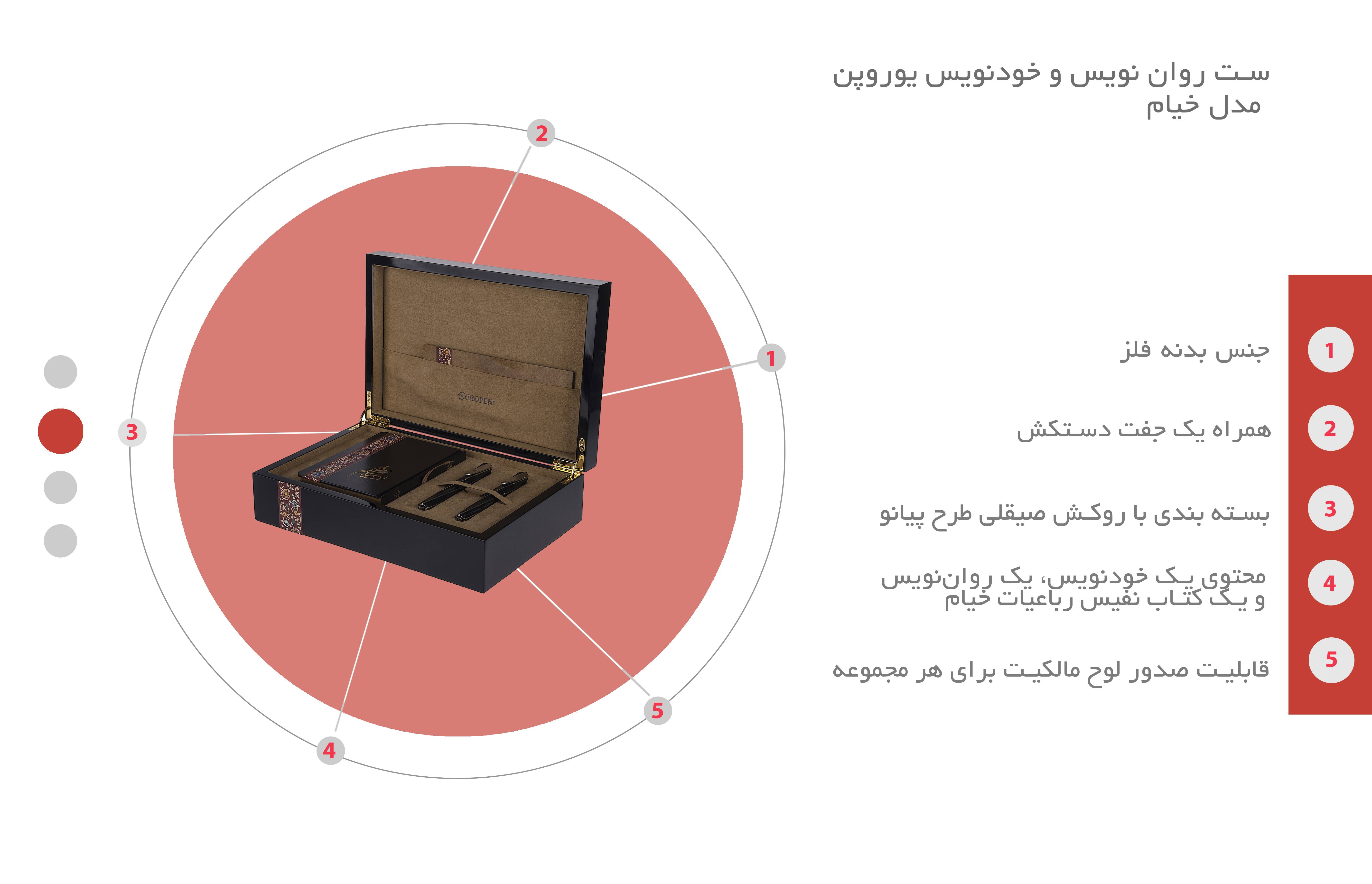 – محتوی یک خودنویس، یک رواننویس و یک کتاب نفیس رباعیات خیام -