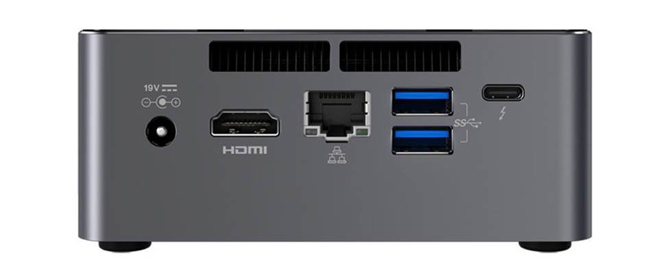 مینی کامپیوتر اینتل مدل NUC7I7BNH-C از چهار پورت USB3.0 برای انتقال اطلاعات با سرعت زیاد بهره میبرد. این درگاهها برای اتصال فلشمموری یا هارددیسک به مینیکامپیوتر NUC7I7BNH-C و انتقال اطلاعات بین حافظهی داخلی آن با فلشمموری یا هارددیسک بسیار کاربردی است. برای اتصال NUC7I7BNH-C به شبکههای کامپیوتر و از جمله اینترنت شرکت اینتل این مینی کامپیوتر را به یک پورت شبکه از نوع ۱۰/۱۰۰/۱۰۰۰ تجهیز کرده است. همچنین یک کارت شبکهی بیسیم برای اتصال به شبکههای بیسیم برای این محصول در نظر گرفته شده که از استاندارد ۸۰۲.11ac بهره میبرد. مینی کامپیوتر NUC7I7BNH-C از بلوتوث نسخهی ۴.۰ بهره میبرد که برای اتصال به ماوس و کیبوردهای بلوتوثی یا انتقال اطلاعات بین دستگاههای پشتیبانی کننده از بلوتوث کاربرد خواهد داشت. برای اتصال مانیتور به این مینی کامپیوترمیتوان از درگاه HDMI تعبیه شده روی آن بهره برد. شرکت اینتل یک درگاه تاندربولت۳ برای این محصول در نظر گرفته تا از آن برای انتقال اطلاعات با سرعت زیاد بتوان بهره برد. مینی کامپیوتر NUC7I7BNH-C انرژی مورد نیاز خود را از طریق آداپتور برق شهری که در جعبهی محصول تعبیه شده، تامین میکند.