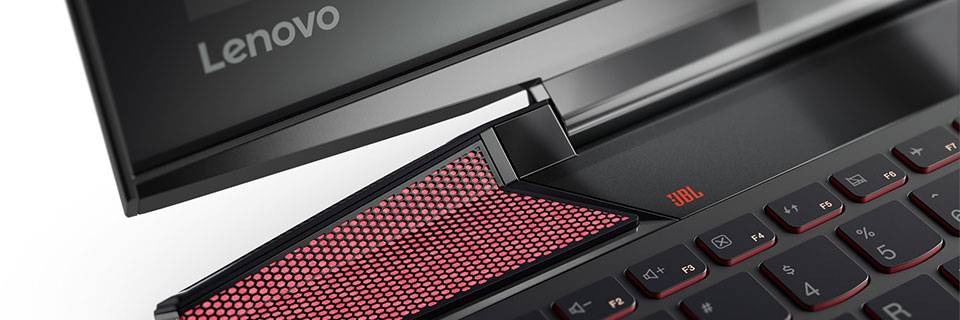 اگر به تماشای فیلم با لپتاپتان علاقهی زیادی دارید، از ترکیب نمایشگر با بلندگوهای JBL سری Y700، رضایت کامل خواهید داشت. در بالا و دو طرف کیبورد، دو شبکهی قرمز بزرگ قرار دارند که در کنار سابووفری که زیر کیبورد تعبیه شده، صدای ۲٫۱ کانالهی رسا، شفاف و بلندی را تولید میکنند. صدای این بلندگوها بهقدری خوب است که واقعا به تهیهی هدفون برای بازی یا تماشای فیلم نیازی ندارید.