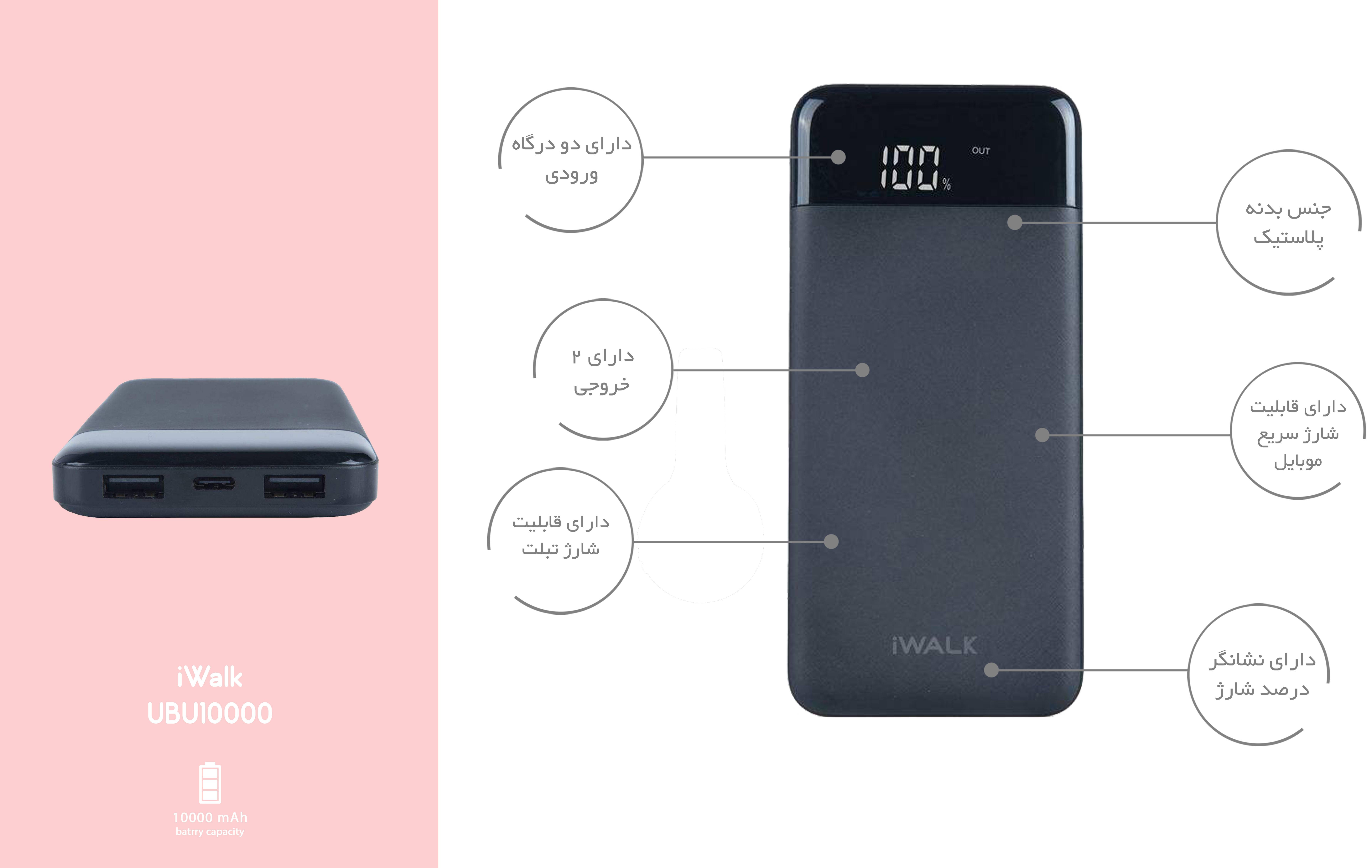 قابلیت های ویژهامکان شارژ تبلت (با شدتجریان ۲.۰ آمپر و بالاتر)