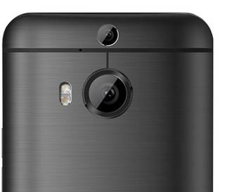 روی قاب پشتی هم برند تجاری htc طبق معمول در وسط هک شده است. نوارهای باریک از جنس پلاستیک این قاب را به چند قسمت مختلف تقسیم کردهاند، تا سیگنالهای ارتباطی راه عبور بهتری به داخل گوشی داشته باشند. روی قاب پشتی گوشی دو دوربین به چشم میخورند. دوربین اصلی در محفظهای پلاستیکی بزرگتر ازآنچه در M9 دیده بودیم قرار دارد. همچنین دوربین کمکی هم بین نوار پلاستیکی و لبهی بالایی گوشی قرار دارد. فلش از نوع «دوگانه با نور سرد و گرم» (Dual Tone LED) هم در کنار دوربین اصلی قابل مشاهده است.