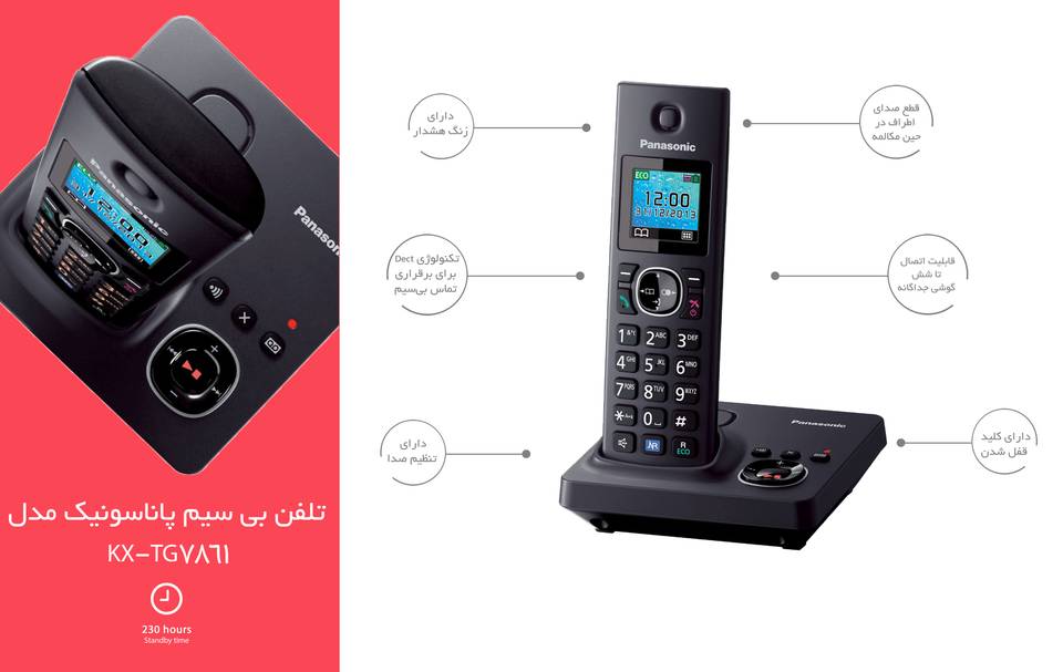 شرکت پاناسونیک از دیرباز با معرفی تلفنهای زیبا و باکیفیت به شهرت رسیده و این کیفیت در طی این سالها به محبوبیت این شرکت افزوده است. محصولی که در این بخش قصد معرفی داریم، تلفن بیسیم KX-TG7861 است. این مدل از ویژگیهایی همچون قابلیت کاهش صدای محیط، تنظیم صدا، اسپیکر و … بهره میبرد. ازنظر طراحی این تلفن ابعاد کوچکی دارد و فضای کمی را اشغال میکند؛ صفحهنمایش آن رنگی است و شمارهها را با وضوح مناسبی نمایش میدهد. در ادامهی این معرفی با ما همراه باشید.