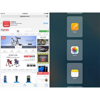 حال بیایید تا با هم به بررسی جذابترین ویژگی iOS 9، یعنی قابلیت دو پنجرهای در این تبلت بپردازیم. به وسیلهی این قابلیت میتوان دو برنامه را بهصورت همزمان و در کنار یکدیگر اجرا کرد. باید گفت که به لطف سختافزار قدرتمند و نمایشگر نسبتا بزرگی که آیپد پرو دارد، این ویژگی به شکل خوبی اجرا میشود. همچنین حالت تصویر در تصویر (Pictures in Pictures) که قبلا آن را در تلویزیونها دیده بودیم، برای این آیپد پرو در نظر گرفته شده. این ویژگی این امکان را به کاربر میدهد تا با کوچک کردن اندازهی ویدئوی در حال پخش، همزمان به انجام کار دیگری بپردازد.