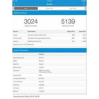 3rd generation 64-bit A9X chip paired with M9 motion coprocessor Chipset