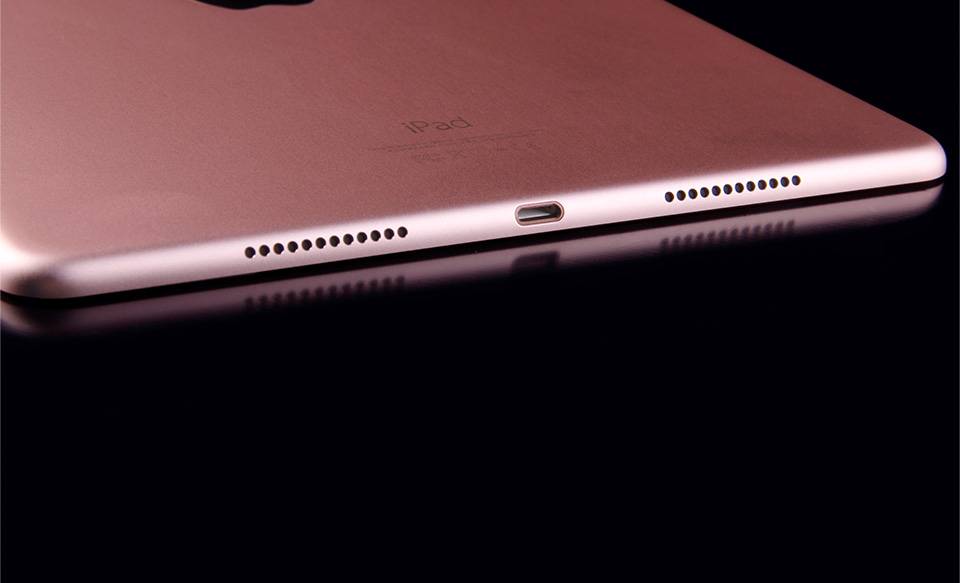 دیگر سرنخی که میتوان از آن به تشخیص آیپد پرو ۹.۷ پی برد، رنگ صورتی است. این برای نخستین باری است که اپل در کنار سه رنگ نقرهای، خاکستری و طلایی از رنگ رزگلد برای تبلتهای خود استفاده کرده است. علاوه بر این، آیپد پرو ۹.۷ مانند آیپد پرو ۱۲.۹ دارای چهار اسپیکر استریو است و بر لبهی سمت چپ آن سه پین برای اتصال کیبورد وجود دارد.