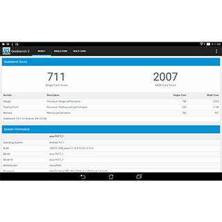نتایج بهدستآمده از این تبلت در بنچمارکهای مختلف این حقیقت را نشان میدهد که زنپد ۱۰ تبلتی بسیار متواضع و کمادعایی است. ایسوس زنپد ۱۰ بهاندازهی کافی قدرتمند و توانمند است که میتواند از پس کارهای ضروری و روزمرهتان برآید. مغز متفکر این تبلت میانرده را تراشهی اینتل اتم Z3560 تشکیل میدهد. درون این تراشه از یک پردازندهی چهار هستهای با عملکرد ۶۴ بیتی بههمراه یک رم دو گیگابایتی استفاده شده است. حداکثر سرعت کاری این پردازنده ۱.۸۳ گیگاهرتز است و میتواند سریعتر از سایر زنپدها، دستورات را پردازش کند. این مجموعهی سختافزاری در بنچمارکهای مختلف نمرهی نسبتا مناسبی کسب کرد؛ اما هرگز نمیتوان اجرای بیدردسر برنامهها و بازیهای سنگین را از این محصول میانرده انتظار داشت. زنپد ۱۰ مدل Z300CL در بخش تکهستهای بنچمارک Geekbench 3.0 امتیاز ۷۱۱ و در بخش چندهستهای امتیاز ۲۰۰۷ را کسب کرد.