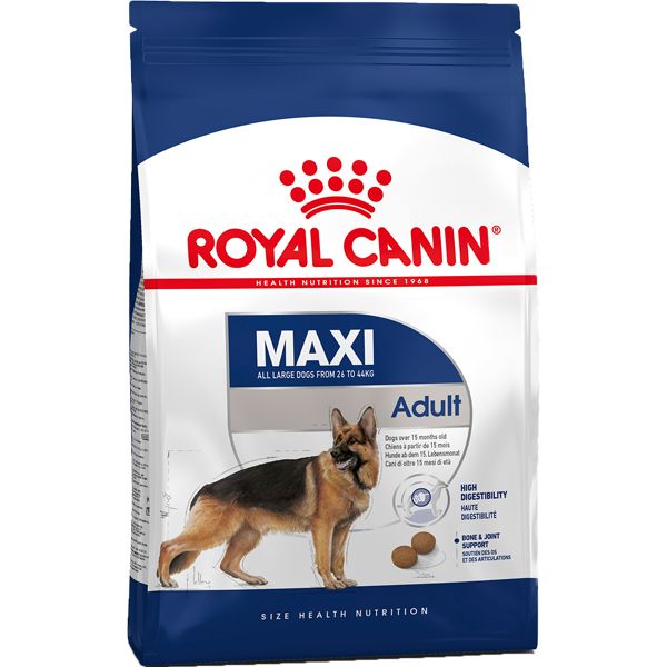 غذای خشک رویال کنین یک غذای تولید کشور فرانسه است که از محبوبیت بسیار زیادی در سطح جهانی برخوردار است. غذای خشک رویال کنین Maxi Adult مناسب سگهای بالغ از نژادهای بزرگ است. یعنی نژادهایی با جثه درشت مثل ژرمن شپرد، روتوایلر، دوبرمن، گریت دین، هاسکی، بولداگ، باکسر و… . این غذای خشک از مواد بسیار باکیفیتی تهیه شده است و میتواند نیازهای بدن سگ شما را به خوبی تامین کند.