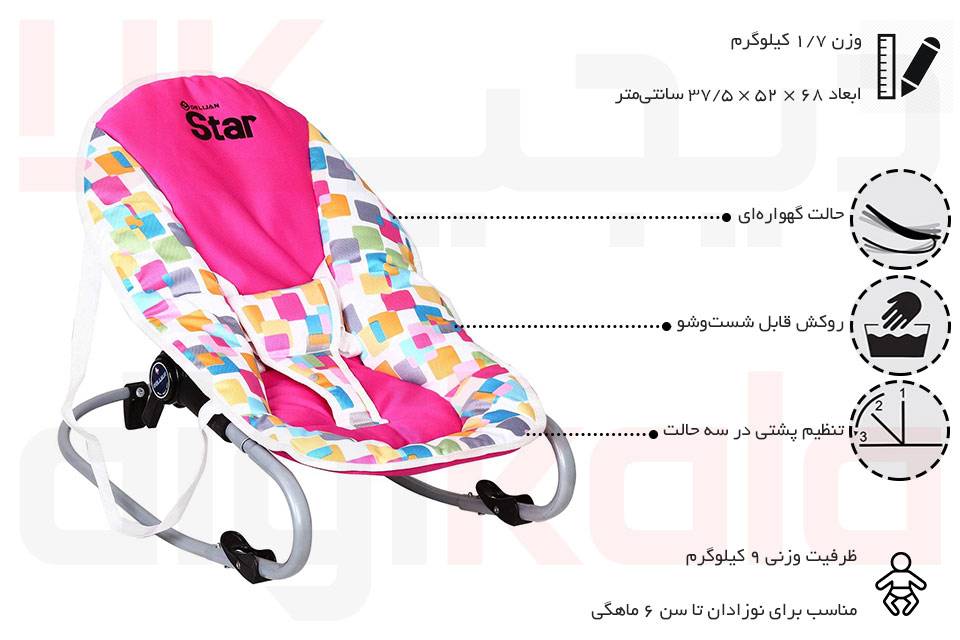 نینی لایلای «دلیجان» مدل «Star» تنها ۱/۷ کیلوگرم وزن دارد. این محصول برای نوزادان از بدو تولد تا ششماهه در نظر گرفته شده است که وزنی معادل ۹ کیلوگرم دارند. دلیجان، نینی لایلای خود را به ابعاد ۶۸ × ۵۲ × ۳۷/۵ سانتیمتر عرضه کرده است. این محصول میتواند بهعنوان گهواره هم استفاده شود.