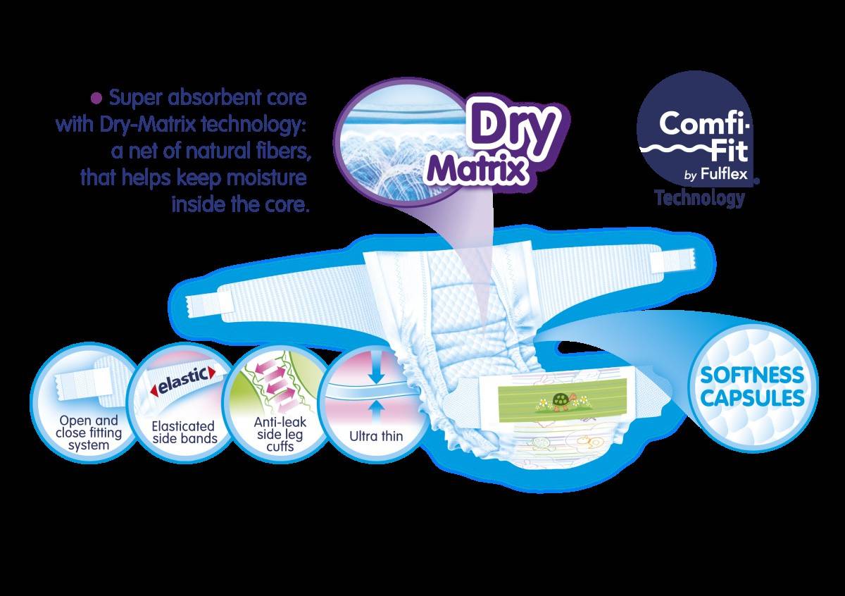 بنابراین، این طراحی پیشرفته محصول، میتواند خشکی موردنیاز نوزاد را، هم در طول روز و هم در شب و در هنگامیکه نیاز به جذب حتی بیش از نیاز طبیعی است، فراهم کند. این باعث خواب آرامتر نوزادان و والدین میشود!