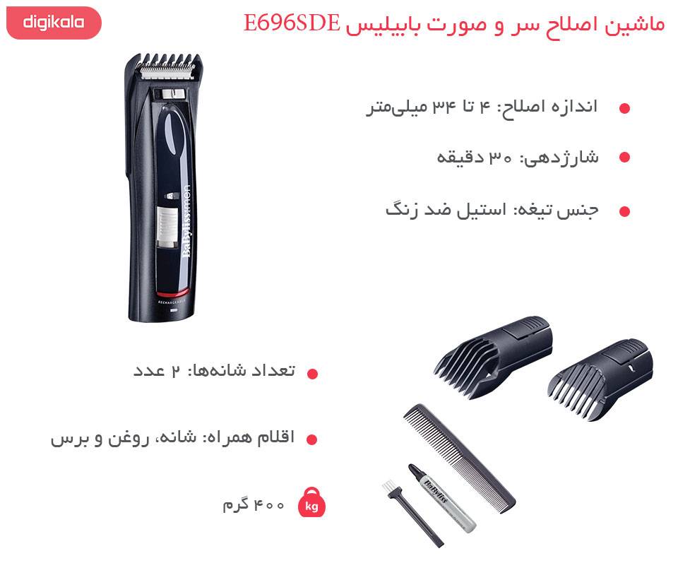ماشین اصلاح E696SDE ساخت شرکت «بابیلیس» (Babyliss)، سری برش مستقیم دارد. سری برش مستقیم موهای صورت را با مرزبندی مشخص کوتاه میکند. همچنین سریهای آن از استیل ضدزنگ ساخته شدهاند که به مقاومت آن در برابر هوای مرطوب و فرسایش میافزاید.