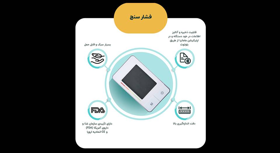 کنترل فشار خون مادران در زمان بارداری از اهمیت بالایی برخوردار است. فشارخون بالا در طول بارداری نهتنها بر سلامت مادر تأثیر میگذارد، بلکه جنین را نیز تهدید میکند. معمولاً اندازهگیری فشارخون در کلینیک انجام میشود ولی به خاطر مشغلههای کاری و زندگی روزانه، اکثر مردم برای مراجعه به کلینیک و انجام برخی از آزمایشها و کنترل سلامتی خود مانند اندازه گرفتن فشارخون وقت کافی ندارند؛ بنابراین تهیه یک فشارسنج دیجیتالی با دقت بالا میتواند راهحلی کاربردی برای این مشکل باشد. در مجموعه مراقبت بارداری مامنیا، یک دستگاه فشارسنج ارائه میشود که در ابعاد کوچک طراحی و تولید شده است. این فشارسنج، به یک صفحهنمایش LCD مجهز شده است و پس از اندازهگیری فشار، دو عدد فشار سیستولیک و دیاسیتولیک را بهصورت دیجیتال اعلام میکند. برای تأمین انرژی دستگاه، بهجای آداپتور میتوان از ۴ عدد باتری قلمی (AA) استفاده کرد تا در جابهجا کردن دستگاه محدودیتی وجود نداشته باشد.