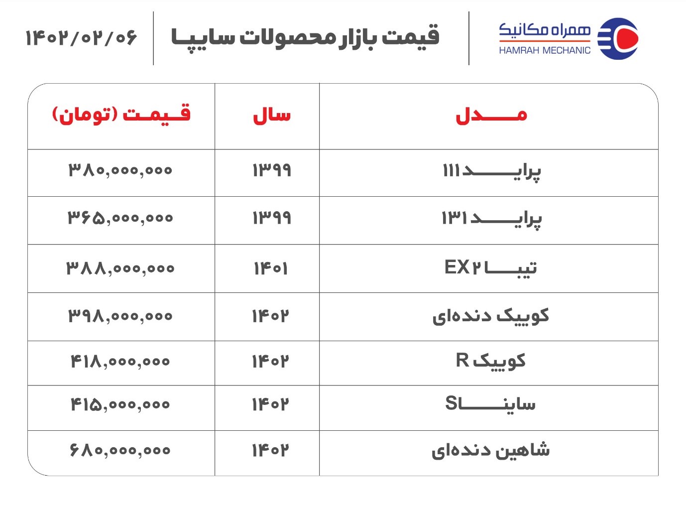 منبع قیمت خودرو: همراه مکانیک https://www.hamrah-mechanic.com